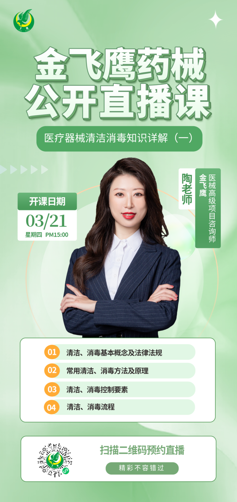 金飛鷹直播培訓(xùn),是每周一次的固定培訓(xùn)欄目,優(yōu)選金飛鷹國內(nèi)外資深注冊/項目老師定期為大家講解醫(yī)療器械注冊相關(guān)知識,解答大家在醫(yī)療器械注冊過程中的諸多疑問。