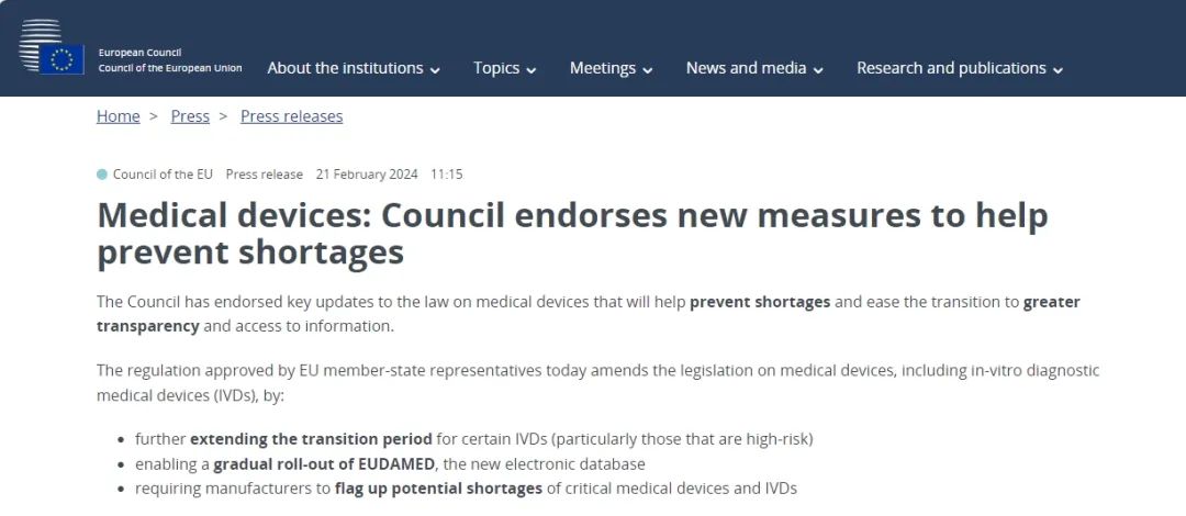 ? 進(jìn)一步延長某些體外診斷器械(尤其是高風(fēng)險體外診斷器械)的過渡期
