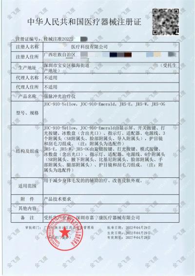 這兩大知名脫毛儀品牌,對應(yīng)的公司名稱分別為由萊和千譽(yù),而你知道他們的產(chǎn)品注冊證(以及生產(chǎn)許可證)是由誰協(xié)助辦理的嗎?沒錯(cuò),就是我們——金飛鷹!(驕傲臉.jpg)
