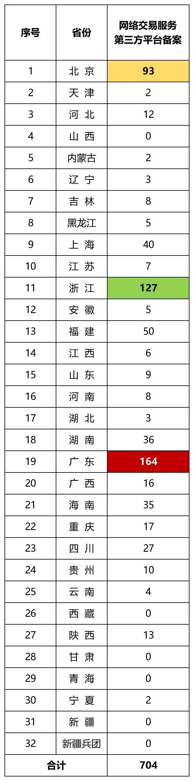 據(jù)國家藥監(jiān)局統(tǒng)計(jì),截至2023年2月28日,我國各省醫(yī)療器械醫(yī)療器械網(wǎng)絡(luò)交易服務(wù)第三方平臺(tái)數(shù)據(jù)如下:
