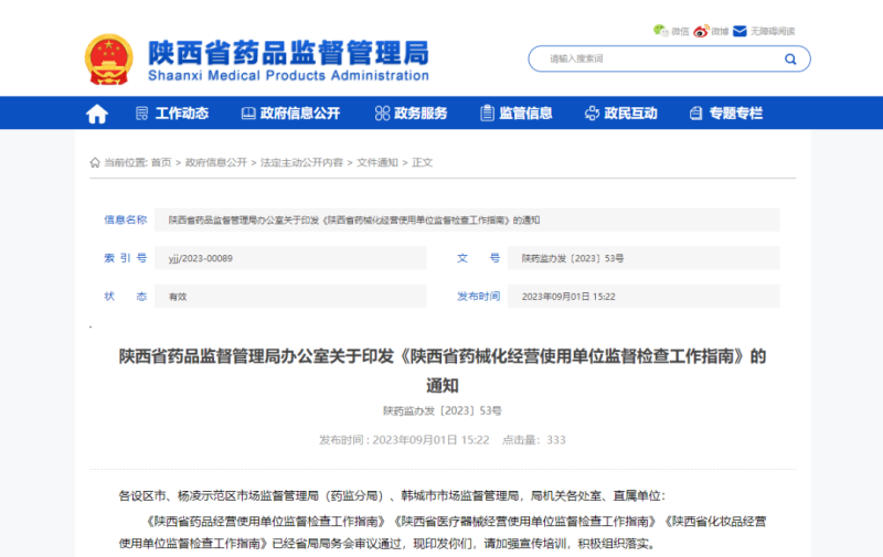 近日,陜西省藥監(jiān)局官網(wǎng)發(fā)布《陜西省藥品經營使用單位監(jiān)督檢查工作指南》《陜西省醫(yī)療器械經營使用單位監(jiān)督檢查工作指南》《陜西省化妝品經營使用單位監(jiān)督檢查工作指南》共3項指南文件,我們將其中《陜西省醫(yī)療器械經營使用單位監(jiān)督檢查工作指南》部分重點內容摘錄如下: