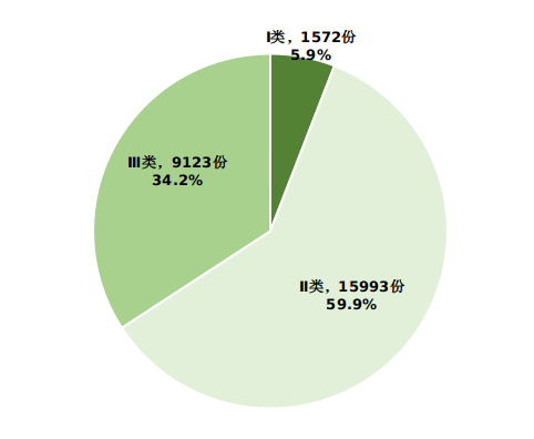 ? 附圖:涉及北京市醫(yī)療器械注冊(cè)人、備案人、進(jìn)口醫(yī)療器械代理人的報(bào)告按器械管理類(lèi)別統(tǒng)計(jì)情況