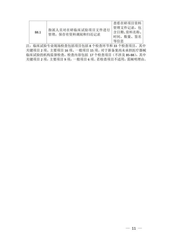《檢查要點(diǎn)》指出,檢查內(nèi)容分為機(jī)構(gòu)和臨床試驗(yàn)專業(yè)兩部分,包括17個檢查環(huán)節(jié)、78個檢查項(xiàng)目,包括對條件與備案管理、運(yùn)行情況等方面的現(xiàn)場檢查內(nèi)容。檢查項(xiàng)目中關(guān)鍵項(xiàng)目共計(jì)8項(xiàng)(標(biāo)示為“★★”),主要項(xiàng)目共計(jì)34項(xiàng)(標(biāo)示為“★”),一般項(xiàng)目共計(jì)36項(xiàng)。其中8項(xiàng)關(guān)鍵項(xiàng)目具體如下: