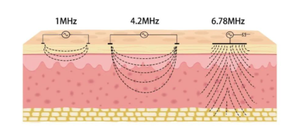 當(dāng)然這不意味著1MHz就沒有作用,首先,表皮真皮會有熱傳導(dǎo),其次,射頻電流主作用的層次如上文所述,但也有小部分能量逸散到上下層的,持續(xù)使用的話自然也是會有一定效果的。