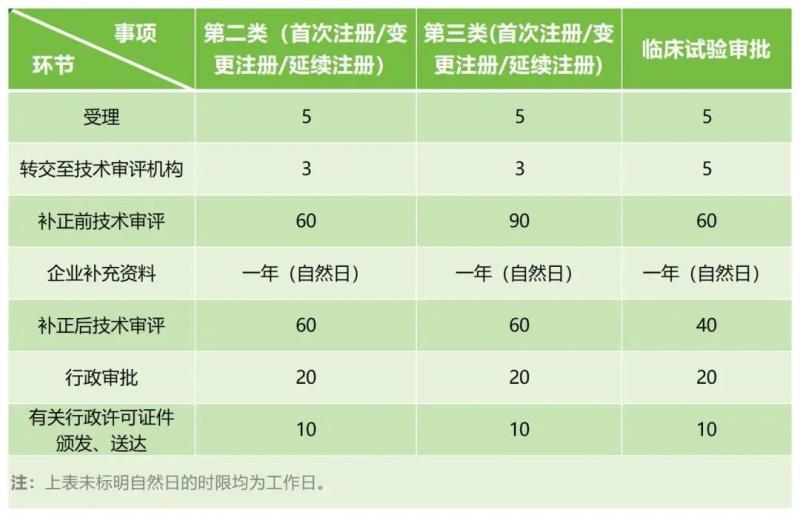 具體來說,第三類醫(yī)械產品的注冊申報時間是要長于第二類醫(yī)療器械的,以下為國家藥監(jiān)局器審中心發(fā)布的法定時限表: