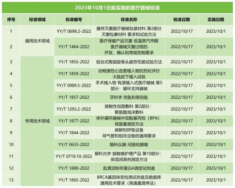 今天是10月1日,那么借此機會我們就將2023年10月1日起實施的13項醫(yī)療器械標準匯總到一起(包括2項通用技術(shù)領(lǐng)域標準及11項專業(yè)技術(shù)領(lǐng)域標準),小編辛苦整理,覺得有用別忘點贊+在看+轉(zhuǎn)發(fā)鼓勵一下哦~