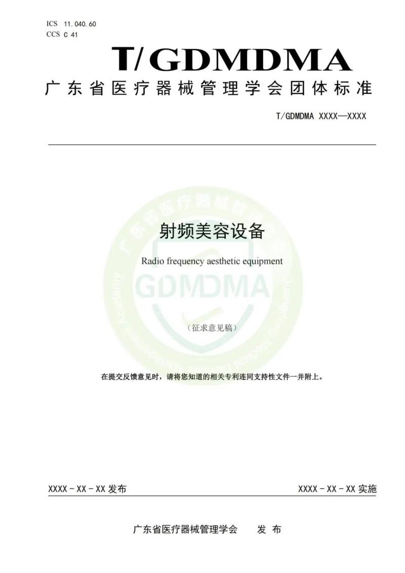近日,廣東省醫(yī)療器械管理學(xué)會發(fā)布公告稱,經(jīng)過前期研討及編寫,《射頻美容設(shè)備》《超聲美容設(shè)備》兩項(xiàng)團(tuán)體標(biāo)準(zhǔn)已形成征求意見稿,現(xiàn)向社會公開征求意見。