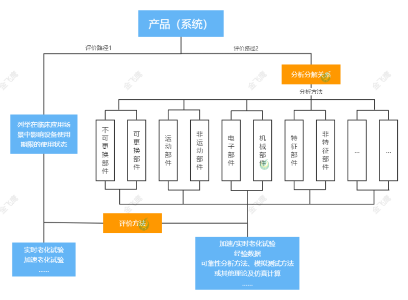 2)通過將產(chǎn)品(系統(tǒng))分解為不同子系統(tǒng)/部件的方式進(jìn)行評價(jià)。首先應(yīng)詳細(xì)分析分解關(guān)系,在此基礎(chǔ)上通過不同的分解方式(如將產(chǎn)品分為關(guān)鍵部件及非關(guān)鍵部件和/或特征部件及非特征部件和/或可更換部件及不可更換部件和/或運(yùn)動(dòng)部件及非運(yùn)動(dòng)部件和/或電子部件及機(jī)械部件等)確定產(chǎn)品的使用期限。