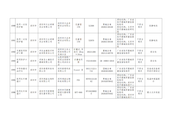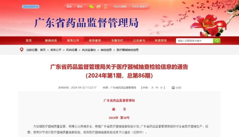 4月22日,廣東藥監(jiān)局發(fā)布《關(guān)于醫(yī)療器械抽查檢驗(yàn)信息的通告(2024年第1期,總第86期)》,我們通過查看通告中的附件發(fā)現(xiàn),本次共抽查檢驗(yàn)了1121批次產(chǎn)品,其中有37批次不符合規(guī)定,包括弱視綜合治療儀、半導(dǎo)體激光治療儀、注射泵、臂式電子血壓計(jì)等產(chǎn)品,不符合規(guī)定產(chǎn)品具體明細(xì)如下: