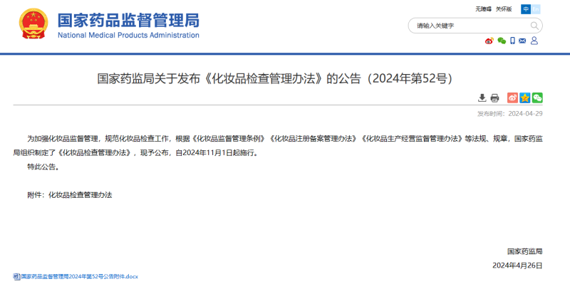 近日,國家藥監(jiān)局發(fā)布《化妝品監(jiān)督管理辦法》。這是我國化妝品監(jiān)管領(lǐng)域第一次系統(tǒng)地規(guī)范化妝品檢查工作,自2024年11月1日開始實(shí)施。