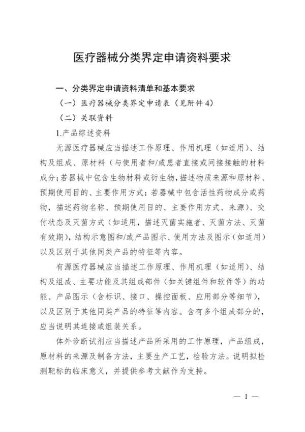 ↑ 醫(yī)療器械分類界定申請資料要求