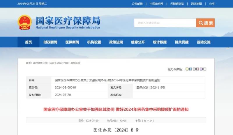 5月20日,國家醫(yī)療保障局發(fā)布《關(guān)于加強(qiáng)區(qū)域協(xié)同做好2024年醫(yī)藥集中采購提質(zhì)擴(kuò)面的通知》(以下簡稱《通知》),對2024年集中采購工作的關(guān)鍵任務(wù)和政策要求進(jìn)行了系統(tǒng)部署。