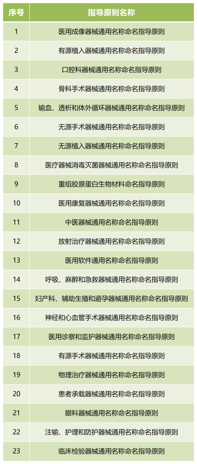 國家藥監(jiān)局在2019年發(fā)布了《醫(yī)療器械通用名稱命名指導(dǎo)原則》,這是制定醫(yī)療器械通用名稱的基本技術(shù)要求,同時(shí)用于指導(dǎo)各專業(yè)領(lǐng)域的命名指導(dǎo)原則編制。而對于各專業(yè)領(lǐng)域存在的特殊情形,也有相應(yīng)的命名指導(dǎo)原則進(jìn)行具體說明。今天我們就匯總了物理治療器械、醫(yī)用康復(fù)器械、醫(yī)用軟件等23類醫(yī)療器械產(chǎn)品通用名稱命名指導(dǎo)原則,具體如下: