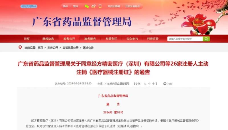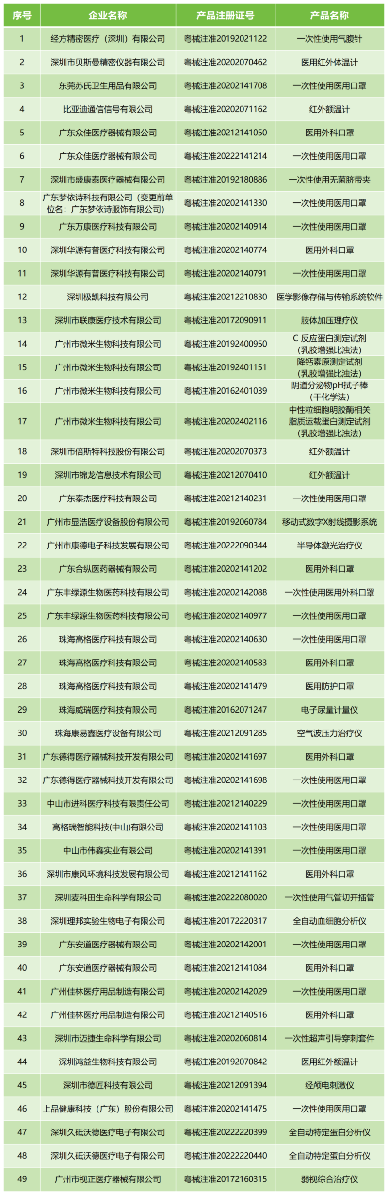 5月29日,廣東藥監(jiān)局發(fā)布通告稱(chēng),深圳市貝斯曼精密儀器有限公司、比亞迪通信信號(hào)有限公司等26家注冊(cè)人向廣東省藥品監(jiān)督管理局主動(dòng)提出注銷(xiāo)產(chǎn)品注冊(cè)證的申請(qǐng),我們通過(guò)查看附件發(fā)現(xiàn),注銷(xiāo)產(chǎn)品以醫(yī)用口罩居多,還有醫(yī)用紅外體溫計(jì)、半導(dǎo)體激光治療儀、空氣波壓力治療儀、弱視綜合治療儀等共49款產(chǎn)品。具體清單如下: