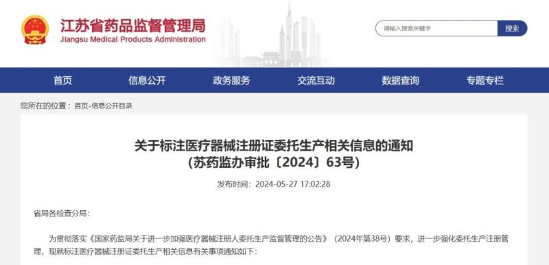 一、自2024年6月1日起,涉及境內委托生產(chǎn)的注冊申請或者延續(xù)注冊申請,省局將在醫(yī)療器械注冊證生產(chǎn)地址欄中登載受托生產(chǎn)地址并注明“(委托生產(chǎn))”,同時在備注欄中備注受托生產(chǎn)企業(yè)名稱和統(tǒng)一社會信用代碼,備注形式為“受托生產(chǎn)企業(yè):XXXX(單位名稱);統(tǒng)一社會信用代碼:XXXX”。變更注冊涉及注冊人委托生產(chǎn)的,也將在變更注冊文件中按照上述方式注明委托生產(chǎn)相關信息。