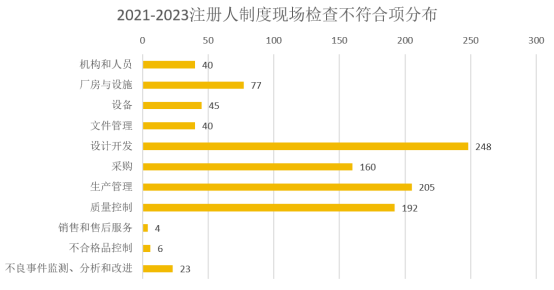 ↑ 2021-2023年注冊人制度現(xiàn)場檢查不符合項分布