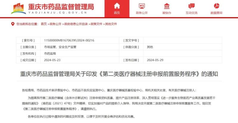 為提高我市第二類醫(yī)療器械(含體外診斷試劑)注冊申報資料質(zhì)量,提升產(chǎn)品注冊效率,深入貫徹落實《進一步服務(wù)生物醫(yī)藥產(chǎn)業(yè)高質(zhì)量發(fā)展若干措施的通知》(渝藥監(jiān)〔2021〕47號)文件精神,切實加強對產(chǎn)品的提前介入指導,我局決定開展第二類醫(yī)療器械注冊申報前置服務(wù)工作。