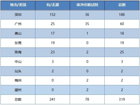 2023年,廣東省新增第三類醫(yī)療器械注冊證319張,居全國第二(僅次于江蘇?。?/span>。2021至2023年度各省新增第三類醫(yī)療器械注冊數(shù)量見表8。