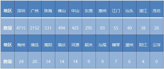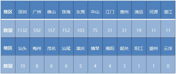 ↑ 表 11 廣東省實有第三類有/無源醫(yī)療器械注冊證數(shù)量(單位:張)