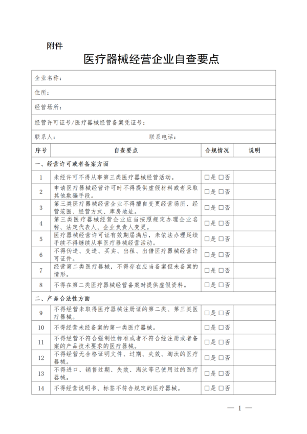 ↑ 醫(yī)療器械經(jīng)營企業(yè)自查要點(diǎn)