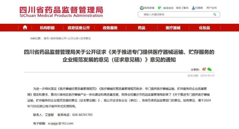 為了保障公眾依法獲取專門提供醫(yī)療器械運輸、貯存服務(wù)的企業(yè)相關(guān)信息,提高行業(yè)和監(jiān)管透明度,構(gòu)建川渝醫(yī)療器械一體化監(jiān)管模式,《意見(征求意見稿)》規(guī)定設(shè)區(qū)的市級藥品監(jiān)管部門要及時公布專門提供醫(yī)療器械運輸、貯存服務(wù)的企業(yè)相關(guān)信息,并細化明確了藥品監(jiān)管部門相關(guān)許可和監(jiān)管事項。