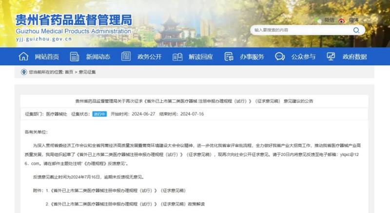 6月27日,貴州省藥監(jiān)局發(fā)布《關(guān)于再次征求〈《省外已上市第二類醫(yī)療器械 注冊(cè)申報(bào)辦理規(guī)程(試行)〉(征求意見稿) 意見建議的公告》,其中提到,該局組織起草了《省外已上市第二類醫(yī)療器械注冊(cè)申報(bào)辦理規(guī)程(試行)》(征求意見稿)(以下簡(jiǎn)稱《辦理規(guī)程》),現(xiàn)再次向社會(huì)公開征求意見。