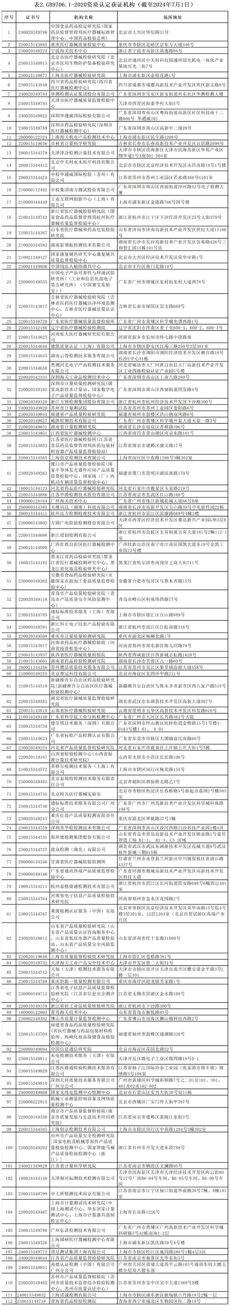 ↑ GB 9706.1-2020資質(zhì)認定獲證機構(gòu)明細