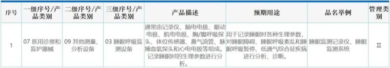 睡眠呼吸監(jiān)測儀在我國作為第二類醫(yī)療器械管理,其產(chǎn)品描述如下:“通常由記錄儀、腦電電極、眼動(dòng)電極、肌電電極、胸/腹呼吸探頭、體位傳感器、鼻氣流管、脈搏血氧探頭和心電電極等組成。記錄睡眠時(shí)的生理參數(shù)進(jìn)行分析”,預(yù)期用途為“用于記錄睡眠時(shí)各種生理參數(shù),對(duì)睡眠障礙、睡眠呼吸紊亂和睡眠呼吸暫停、低通氣綜合征疾病進(jìn)行分析、診斷”,常見名稱還有“睡眠監(jiān)測記錄儀”“睡眠監(jiān)測系統(tǒng)”等,分類編碼07-09-03。
