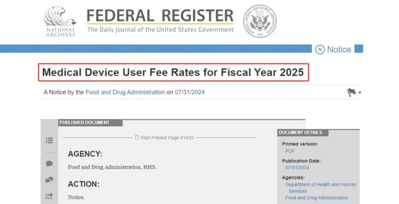 美國當(dāng)?shù)貢r(shí)間7月31日,美國聯(lián)邦公報(bào)(Federal Register)公布FDA 2025財(cái)政年度(2024年10月1日至2025年9月30日)醫(yī)療器械收費(fèi)標(biāo)準(zhǔn)→又雙叒叕漲了!