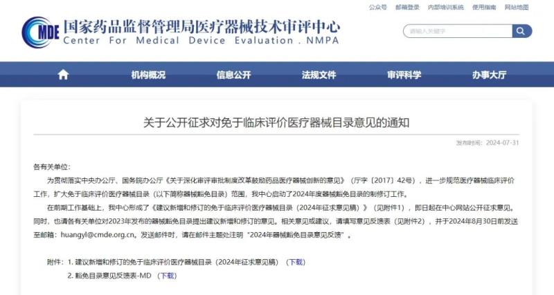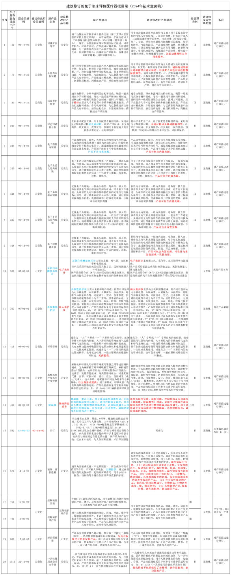 7月31日,國(guó)家藥監(jiān)局器審中心發(fā)布《建議新增和修訂的免于臨床評(píng)價(jià)醫(yī)療器械目錄(2024年征求意見(jiàn)稿)》,并向社會(huì)公開(kāi)征求意見(jiàn)。