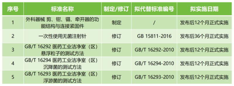 8月5日,國家藥監(jiān)局醫(yī)療器械標準管理中心發(fā)布幾則關于征求醫(yī)療器械國家標準意見的通知,通知顯示,近期共有5項標準形成了征求意見稿,具體明細如下:
