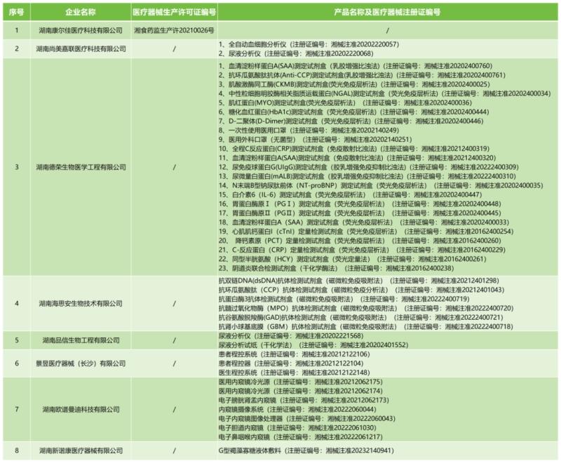 8月6日,湖南省藥監(jiān)局發(fā)布公告稱,按照《醫(yī)療器械監(jiān)督管理條例》《醫(yī)療器械生產(chǎn)監(jiān)督管理辦法》有關規(guī)定,根據(jù)企業(yè)申請,現(xiàn)注銷湖南康爾佳醫(yī)療科技有限公司等1家企業(yè)的醫(yī)療器械生產(chǎn)許可證;注銷湖南尚美嘉聯(lián)醫(yī)療科技有限公司等7家企業(yè)的44個產(chǎn)品的醫(yī)療器械注冊證,具體明細如下: