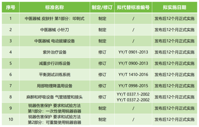 8月9日,國家藥監(jiān)局醫(yī)療器械標(biāo)準(zhǔn)管理中心發(fā)布幾則關(guān)于征求醫(yī)療器械行業(yè)標(biāo)準(zhǔn)意見的通知,通知顯示,近期共有10項(xiàng)標(biāo)準(zhǔn)形成了征求意見稿,具體明細(xì)如下:
