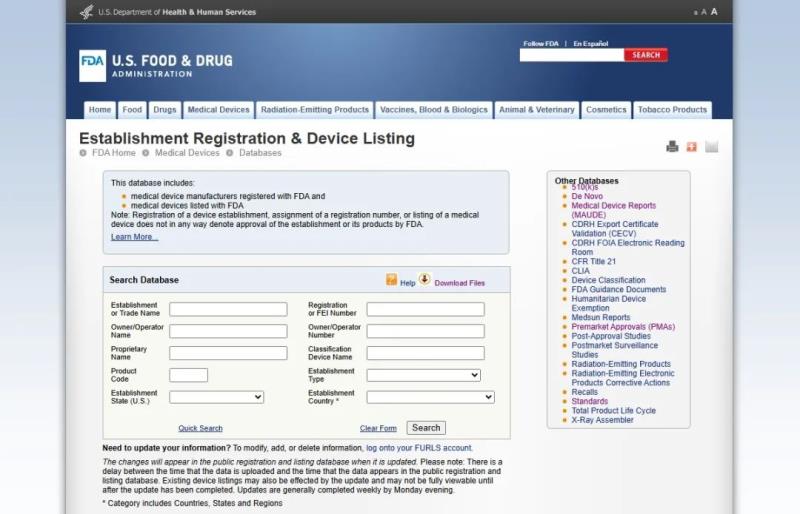 以上只列舉了FDA注冊(cè)部分常用網(wǎng)站。