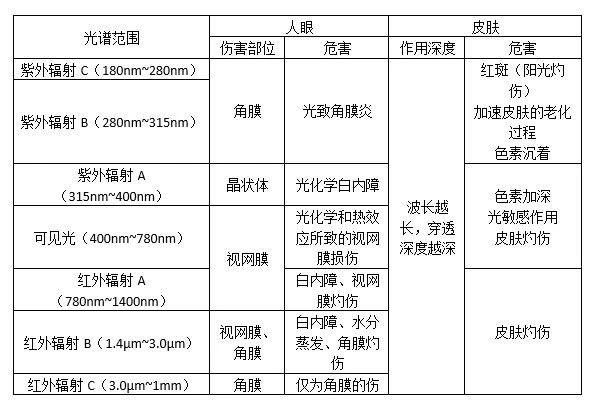 優(yōu)先確定光波段,還有一個重要意義,就是不同的光譜范圍對于人眼和皮膚的危害是不同的,在進行光輻射安全分類測試時,不同波段的發(fā)射有著不同的發(fā)射限值,這在測試和數(shù)據(jù)處理中要尤為注意。