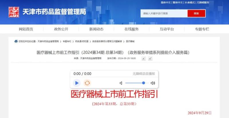 近日,天津市藥監(jiān)局發(fā)布新一期醫(yī)療器械上市前工作指引,匯總了醫(yī)療器械產(chǎn)品注冊申報前的提前介入服務相關(guān)要求,具體如下: