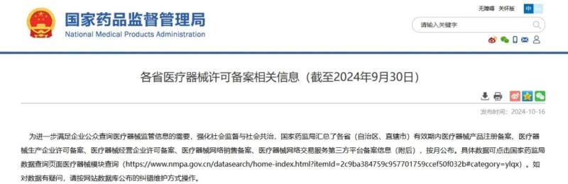 10月16日,國家藥監(jiān)局公布了截至2024年9月30日各省有效期內醫(yī)療器械產品注冊備案、醫(yī)療器械生產企業(yè)許可備案等信息,老規(guī)矩,金飛鷹小編對此稍作編輯,標注紅色、綠色、黃色的分別為前三甲。