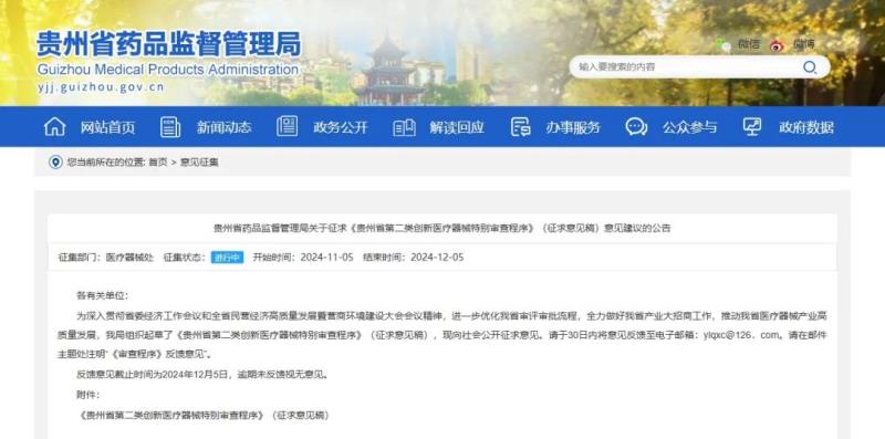 近日,貴州省藥監(jiān)局發(fā)布《貴州省第二類創(chuàng)新醫(yī)療器械特別審查程序》(征求意見稿)(以下簡(jiǎn)稱《程序》),并向社會(huì)公開征求意見。