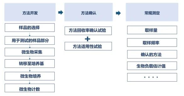 ↑ 圖1 生物負載方法開發(fā)、確認和常規(guī)測定流程圖