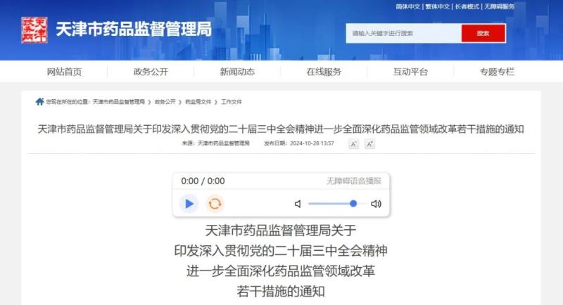 近日,天津市藥監(jiān)局發(fā)布《深入貫徹黨的二十屆三中全會(huì)精神進(jìn)一步全面深化藥品監(jiān)管領(lǐng)域改革若干措施的通知》(以下簡(jiǎn)稱《若干措施》),以落實(shí)天津市委十二屆六次全會(huì)和國家藥監(jiān)局全面深化改革部署要求,全鏈條支持生物醫(yī)藥產(chǎn)業(yè)高質(zhì)量發(fā)展,全生命周期保障藥品高水平安全,全方位加強(qiáng)高效能監(jiān)管和高素質(zhì)專業(yè)化干部隊(duì)伍建設(shè)?!度舾纱胧芬愿帽Wo(hù)和促進(jìn)人民健康為目標(biāo),共制定4個(gè)方面27條深化藥品監(jiān)管領(lǐng)域改革具體措施。