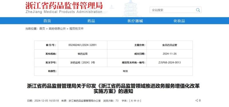 12月5日,浙江省藥監(jiān)局發(fā)布《浙江省藥品監(jiān)管領(lǐng)域推進(jìn)政務(wù)服務(wù)增值化改革實(shí)施方案》(以下簡稱《實(shí)施方案》),以縱深推進(jìn)藥品監(jiān)管領(lǐng)域政務(wù)服務(wù)增值化改革。《實(shí)施方案》從“審評審批再提速、監(jiān)管模式再提效、服務(wù)機(jī)制再提質(zhì)、保障支撐再提標(biāo)”四大部分,共計(jì)提出18條具體舉措。