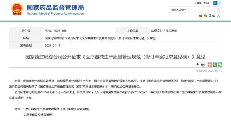 1月15日,國家藥監(jiān)局發(fā)布《醫(yī)療器械生產(chǎn)質(zhì)量管理規(guī)范(修訂草案征求意見稿)》(以下簡稱“新版《規(guī)范》”),并向社會(huì)公開征求意見。