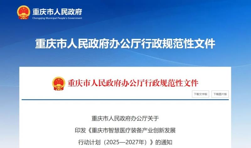 近日,重慶市人民政府發(fā)布《重慶市智慧醫(yī)療裝備產(chǎn)業(yè)創(chuàng)新發(fā)展行動計劃(2025—2027年)》(以下簡稱《行動計劃》),在第三部分“產(chǎn)業(yè)政策”中提到: