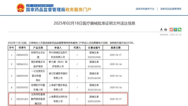 據(jù)悉,該材料在國外醫(yī)美領域已有使用,但在我國一直未有完全合規(guī)的相關產(chǎn)品獲批上市。而此次“注射用羥基磷酸鈣微球面部填充劑”的獲批,不僅填補了這一空白,也為醫(yī)美行業(yè)帶來了新的技術和產(chǎn)品選擇。