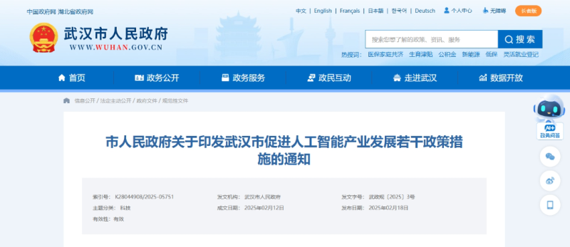 近日,武漢市人民政府發(fā)布《武漢市促進(jìn)人工智能產(chǎn)業(yè)發(fā)展若干政策措施》(以下簡(jiǎn)稱《措施》),以搶抓人工智能發(fā)展機(jī)遇,加快建設(shè)武漢國(guó)家人工智能創(chuàng)新應(yīng)用先導(dǎo)區(qū),打造國(guó)內(nèi)一流的人工智能創(chuàng)新集聚區(qū)和產(chǎn)業(yè)高地。