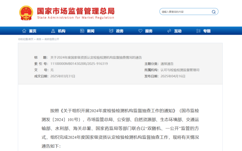 近日,國(guó)家市場(chǎng)監(jiān)督管理總局對(duì)2024年度國(guó)家級(jí)資質(zhì)認(rèn)定檢驗(yàn)檢測(cè)機(jī)構(gòu)監(jiān)督抽查工作有關(guān)情況進(jìn)行通告,其中提到,本次監(jiān)督抽查將自然資源檢驗(yàn)檢測(cè)、生態(tài)環(huán)境監(jiān)測(cè)、機(jī)動(dòng)車檢驗(yàn)、水利水質(zhì)監(jiān)測(cè)、進(jìn)出口商品檢驗(yàn)、醫(yī)療器械防護(hù)用品檢驗(yàn)檢測(cè)、食品檢驗(yàn)、消防產(chǎn)品檢驗(yàn)檢測(cè)、建筑保溫材料檢驗(yàn)檢測(cè)、電動(dòng)自行車及蓄電池檢驗(yàn)檢測(cè)、化肥檢驗(yàn)檢測(cè)作為重點(diǎn)領(lǐng)域,共計(jì)抽查國(guó)家級(jí)資質(zhì)認(rèn)定檢驗(yàn)檢測(cè)機(jī)構(gòu)100家(含22家國(guó)家質(zhì)檢中心),其中重點(diǎn)領(lǐng)域機(jī)構(gòu)65家,其他領(lǐng)域機(jī)構(gòu)35家。