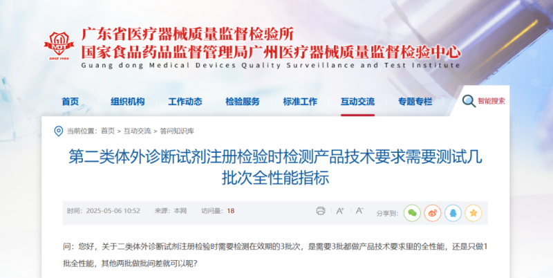根據廣東省醫(yī)療器械質量監(jiān)督檢驗所的答復,二類體外診斷試劑檢測可選擇只做1批全性能,其他兩批做批間差。鑒于試劑注冊檢驗需要配套儀器資料,因此建議待儀器性能注冊檢測合格后或儀器已經過第三方的計量校準,再申請試劑注冊檢驗。