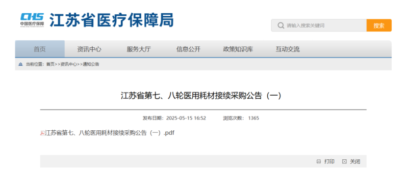 申報路徑:登錄江蘇省招采子系統(tǒng)-耗材招采管理-帶量采購(新)-省級帶量采購-省第七、八輪接續(xù)。
