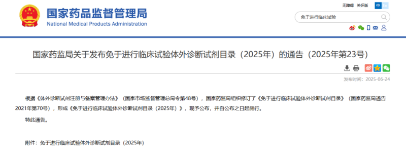 6月24日,國家藥監(jiān)局發(fā)布《免于進(jìn)行臨床試驗(yàn)體外診斷試劑目錄(2025年)》(以下簡稱“2025年目錄”),共有445類IVD產(chǎn)品可免于臨床試驗(yàn),其中Ⅲ類產(chǎn)品27種,Ⅱ類產(chǎn)品418種。我們通過與《免于臨床試驗(yàn)體外診斷試劑目錄(2021年)》進(jìn)行簡單對比,2025年目錄中新增的免于臨床試驗(yàn)產(chǎn)品大概有這些(可能會有疏漏,歡迎指正):