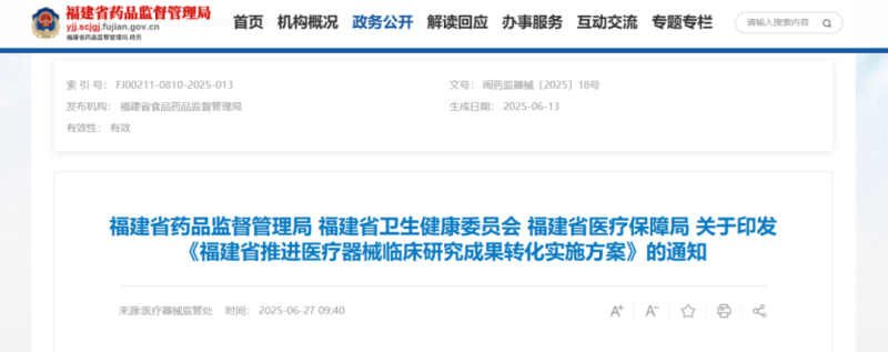 近日,福建省藥監(jiān)局發(fā)布《福建省推進醫(yī)療器械臨床研究成果轉(zhuǎn)化實施方案》(以下簡稱《方案》),推進以臨床價值為導向的醫(yī)療器械源頭創(chuàng)新,通過廣泛挖掘臨床醫(yī)生的醫(yī)療器械創(chuàng)新創(chuàng)意,將來自臨床的解決方案與醫(yī)療器械研發(fā)有效結(jié)合。